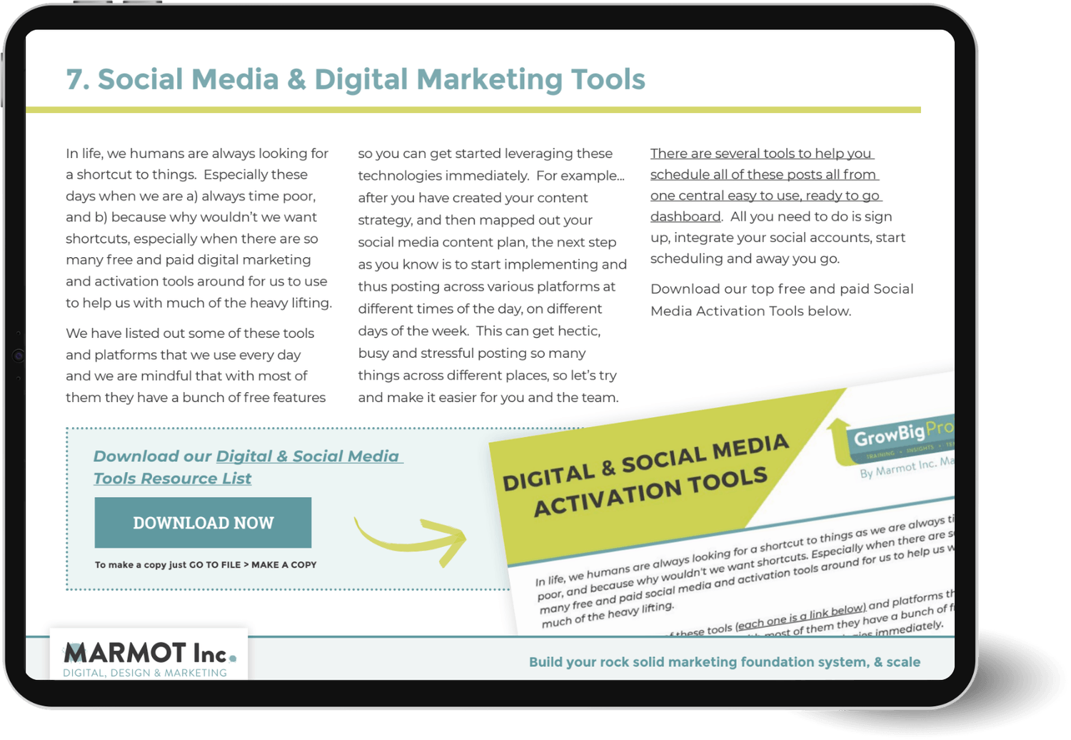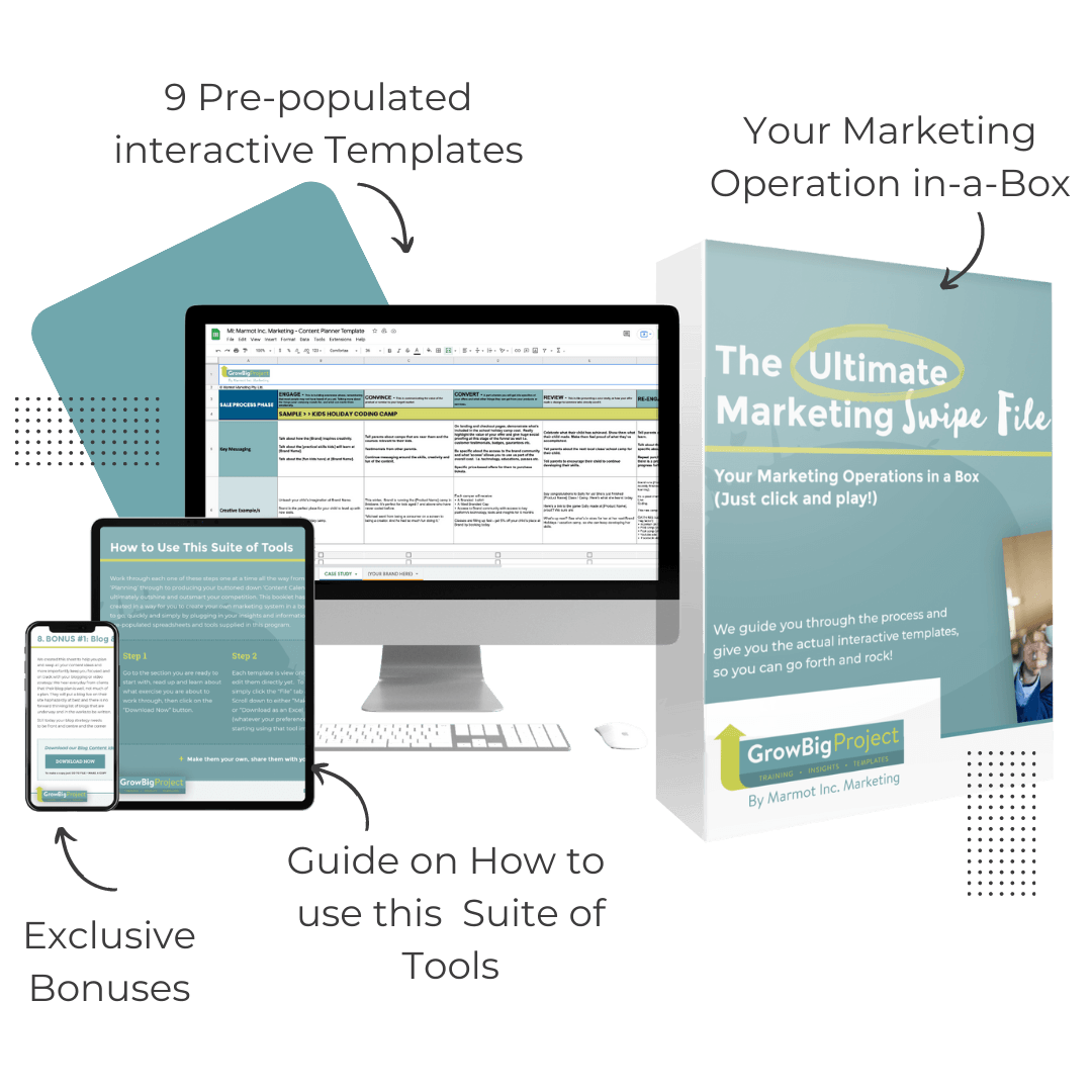 Let’s change that! The Ultimate Marketing Toolbox is designed to help you navigate this new era with ease. It provides essential templates and tools to keep you ahead of the curve. It’s simple enough for your small or large marketing team to dive in and get started right away. You’ll transform their workload and effectiveness overnight by activating this straightforward system in your business!