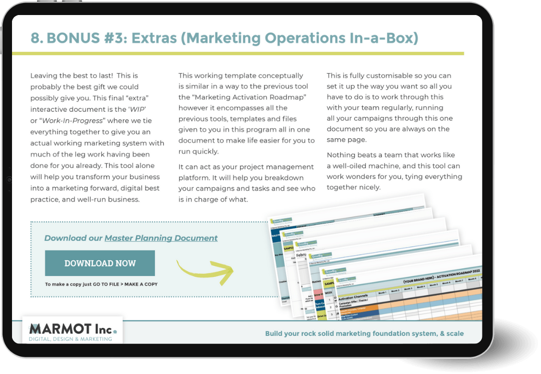 Looking to grow and scale your business but don’t have the marketing resources or skills in place yet within the business? Transform your marketing strategy with an all-in-one interactive toolkit featuring seven ready-to-use templates, crafted to streamline your marketing operations, boost efficiency, and achieve exceptional and fast results.